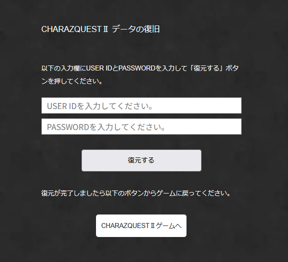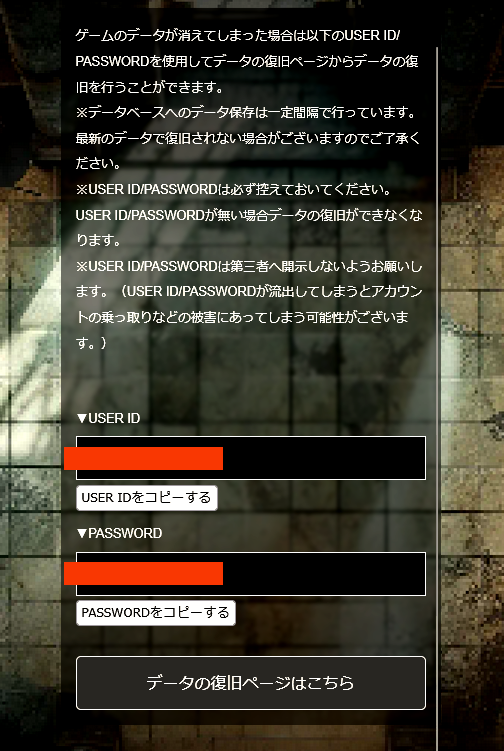 今後ユーザー様のデータをお守りするために9月26日(金)のアップデートに伴い、データ復元の際USER IDとPASSWORDでデータの復元ができる仕様へ変更させて頂きます。