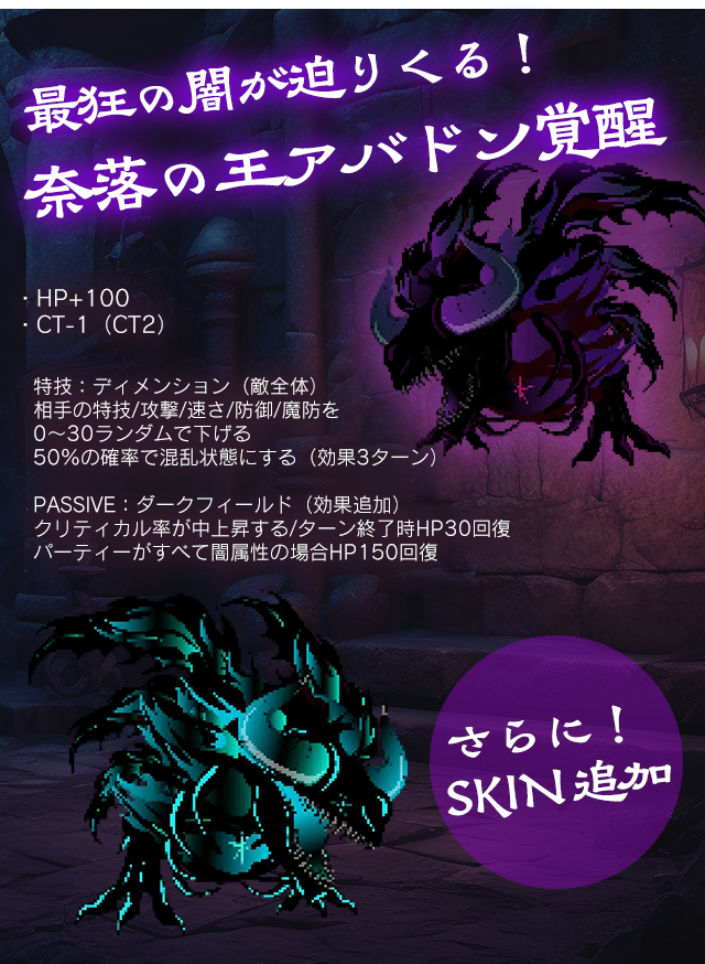 最狂の闇が襲来する!? トピックス X Facebook はてブ Pocket LINE コピー 2025.11.12 2025.11.14 奈落の王アバドン(SR)覚醒!さらに専用スキンも同時追加予定!