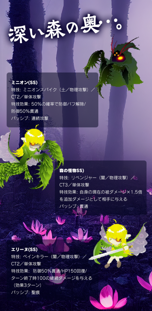 深い森の奥…。 トピックス X Facebook はてブ Pocket LINE コピー 2026.03.04 森に潜む者たちが覚醒!2026年3月6日(金)覚醒予定です!他、Sランクキャラクター3体も同時覚醒予定! ※上記は開発中の情報になります。予告なしに変更させて頂く場合がありますのでご了承ください。